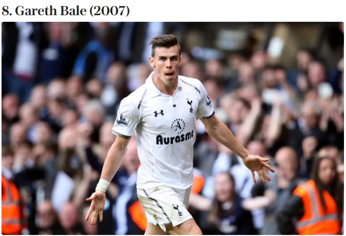 转会费:2007年700万镑从南安普顿加盟热刺,经通胀转机后转会费1240万镑