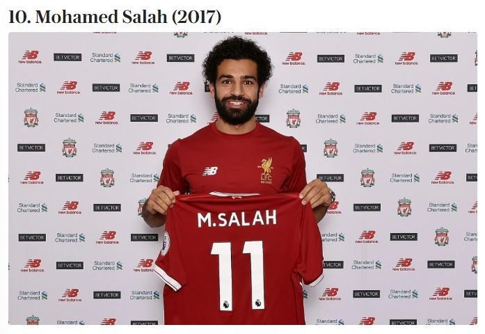 01月01日讯 《电讯报》评比了英超历史最伟大转会,其中坎通纳排在第1,亨利第2,C罗第4,萨拉赫第10。