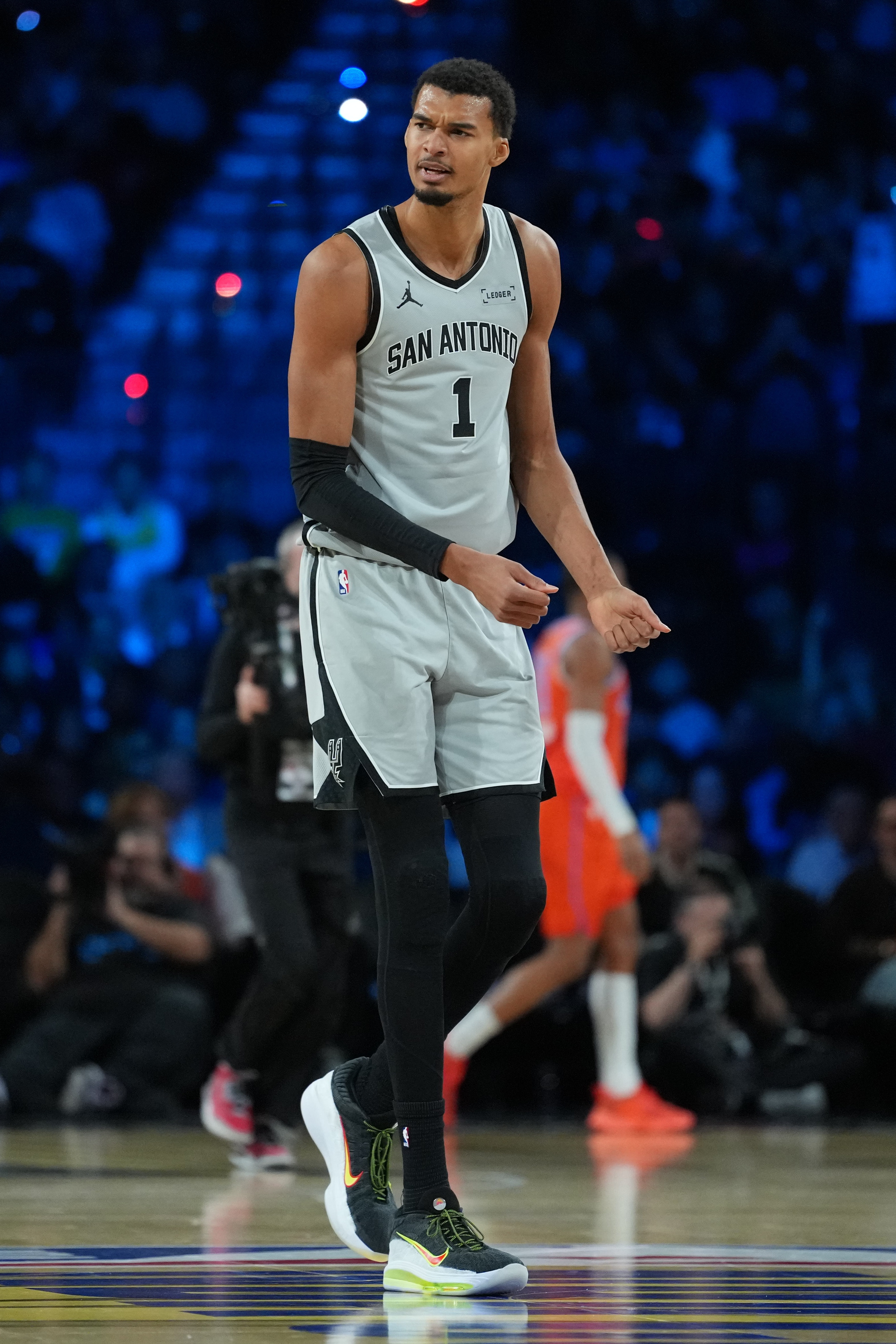 赛后,卡鲁索继承了记者采访。谈到文班亚马那次被切球后的中距离掷中,他说谈:“他关于每个东谈主来说齐是一个错位。他身高7英尺多,时候也很出色。在那一次迫切中,我先是把拍子掉了一次,然后在他出手的时辰又打了一下,但他照旧找到了概念将球投进。他真的是一位出色的球员,何况他会变得越来越好。”