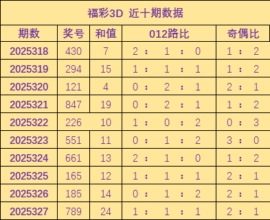 开奖总结:福彩3D上期奖号为789,其中奖号012路比为1:1:1,和值为24,奇偶比2:1。