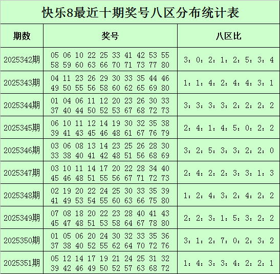福彩适意8第2025351期开奖回来:05 12 14 17 19 21 24 25 31 32 39 42 46 49 50 52 57 63 68 72,其中奖号八区比为1:4:3:3:4:2:2:1。
