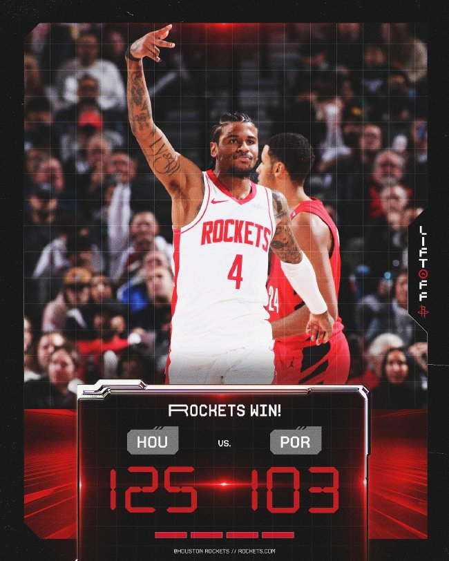 杰伦·格林三节打卡高效砍下26分5篮板,申京23分15篮板6助攻,火箭取胜稳居西部第二。