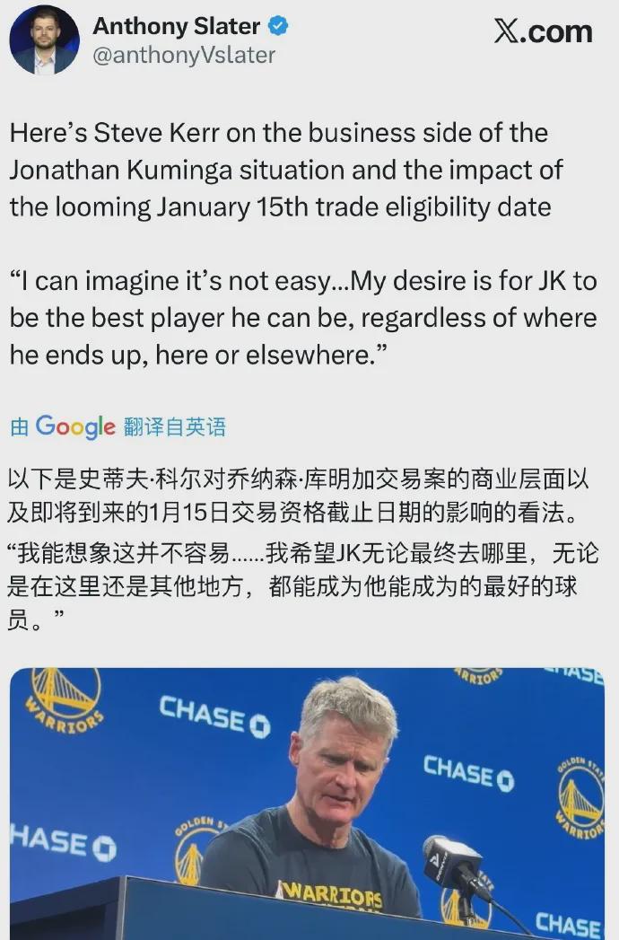 今夏休赛期,库明加与骁雄结束两年4850万好意思元续约协议,第二年球队选项,前者还放弃了走动否决权,当时就不竭好了会在本赛季中期为他寻找新下家,且如今科尔将其手脚念透明东说念主,总之分说念扬镳实在已成定局。