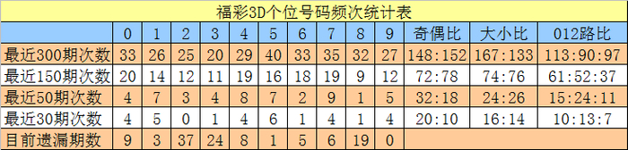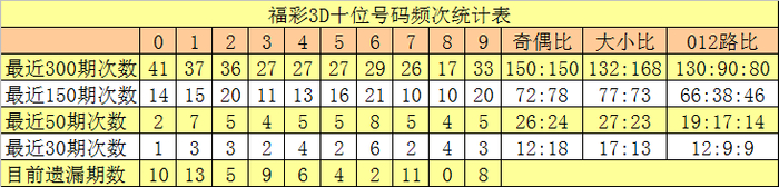 个位分析:近50期该位分解活跃的号码有:7出现9期,4出现8期,1、5出现7期;分解较冷的号码有:8开出1期,6开出2期,2开出3期。该位号码奇偶比为32:18,大小比为24:26。本期该位杀两码7、9,防号码0、3、8出现,精选一码3。