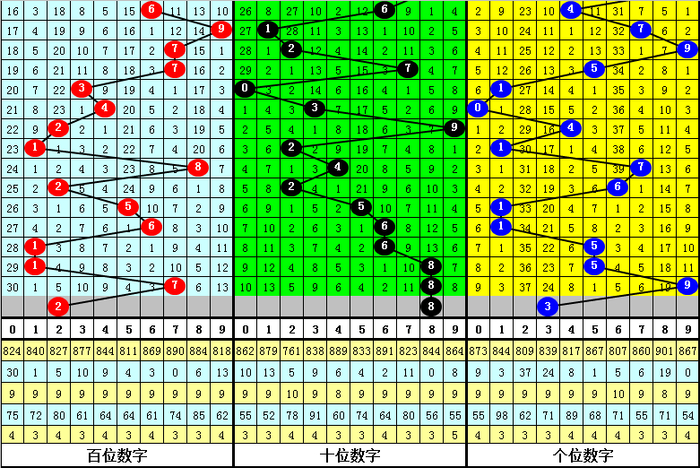 百位分析:最近50期分解较热的号码有:1出现9次,7出现8次,6出现7次;分解较冷的号码有:0出现1次,9出现2次,2出现3次。出号奇偶比为27:23,012路比为14:23:13。本期该位绝杀两码7、8,参考号码2、3、4,精选一码2。